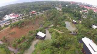 途經我們午飯後要到的小瑞士花園、清境農場(因到達時,雨落得實在大而無緣觀賞),團友葉先由導遊提起的1700公尺高度開始,不斷提供所到之處高度。 隨著高度不斷升幅,周圍的山嶺盡在眼前,甚至腳下。遠望厚厚的雨雲,就是影響我們下午行程的原因。只有在遼闊的山野間,才能感受到〔東山飄雨西山晴〕的壯麗景象。