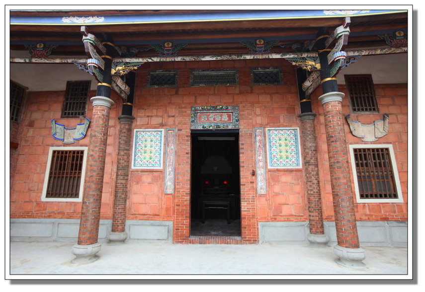 主要構造為紅磚建築,正廳檐廊上之圓磚柱,為弧形紅磚疊砌而成,極為少見特殊,屋身的斗磚雕刻、彩繪、堆花等裝飾,亦為精美且保存良好,為清代台灣富紳住屋,以及日本時代手工藝產業興起後的鄉紳住家的代表作。